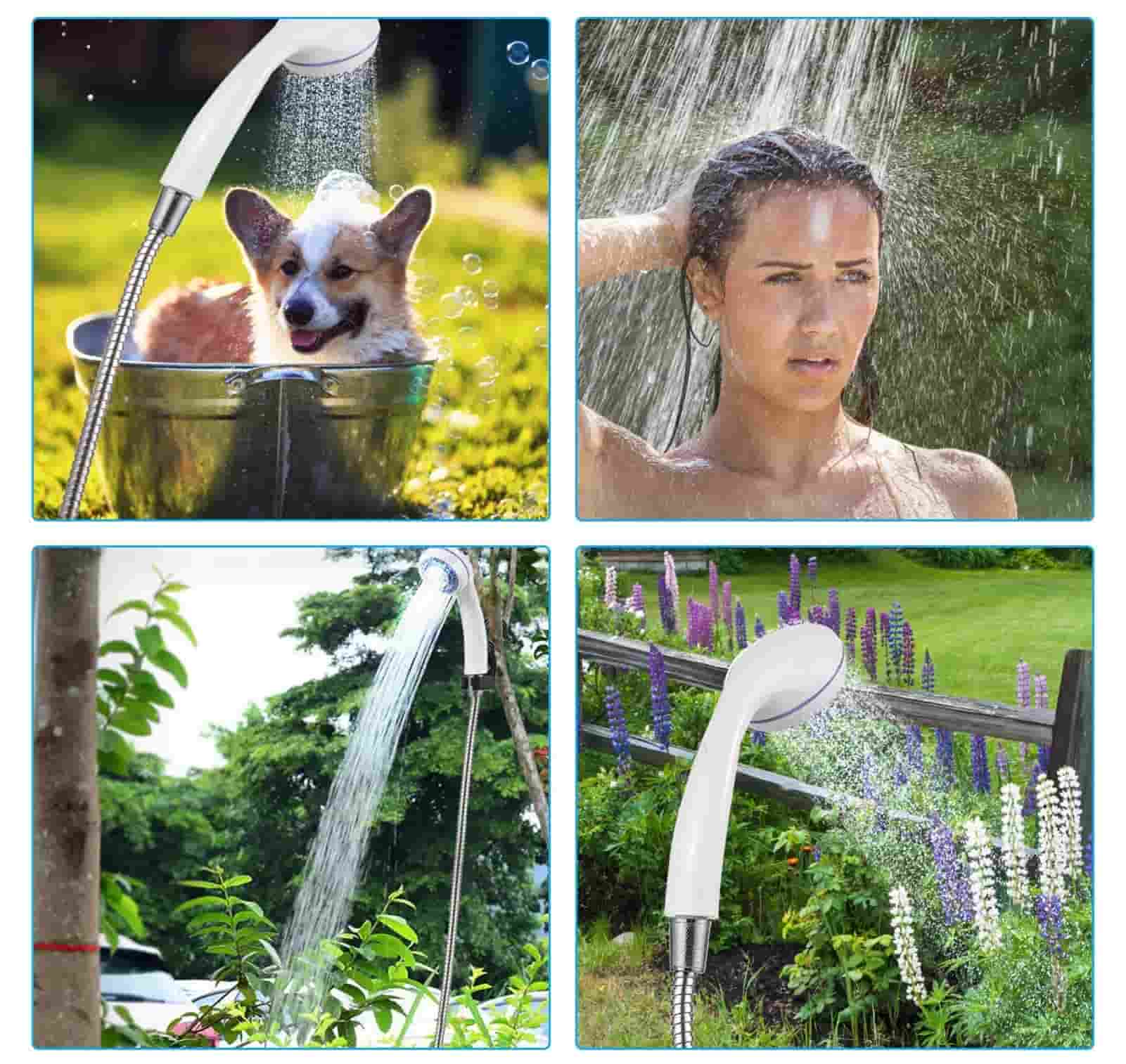 Adecuada para ducha interior y exterior, lavado de mascotas, lavado de automóviles, riego de jardines, viajes/acampada ,etc.
